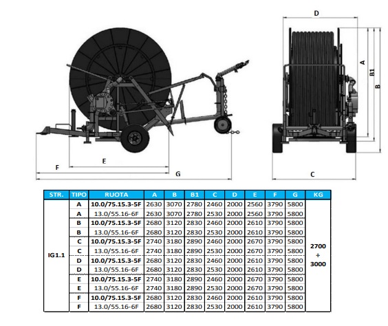 Bevattningsmaskiner TURBOCAR IG1.1S vridbar