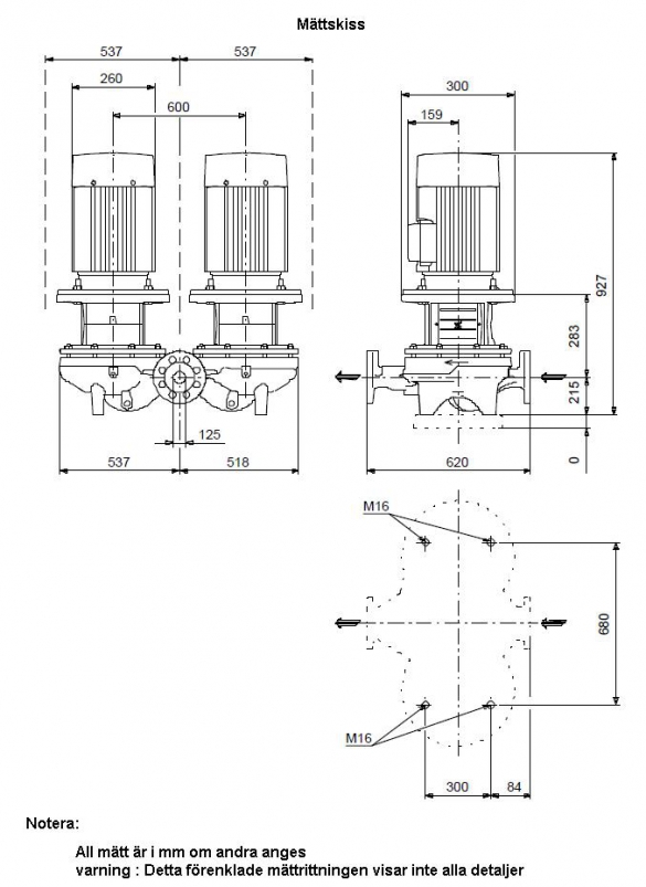 - Enstegs, direktkopplad, dubbelpump med inlopps-och utloppsportar i linje med samma diametrar.