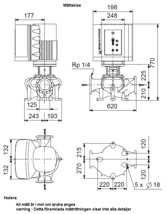 • Röranslutningen sker med PN 16 DIN-flänsar (EN 1092-2 och ISO 7005-2).