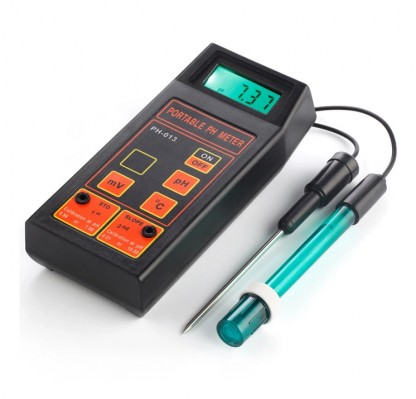 pH mätaren är designad för maximal användarvänlighet. Mätaren har en automatisk temperaturkompensation, vilket gör att den alltid ger ett snabbt och korrekt mätvärde. På den lätthanterliga handkontrollens display syns tydligt mätvärdet för pH, temperatur (°C) eller mV.