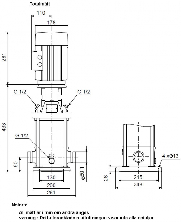 Vertikal, normalsugande, flerstegs, in-line centrifugalpump för installation i rörledning eller montering på fundament.