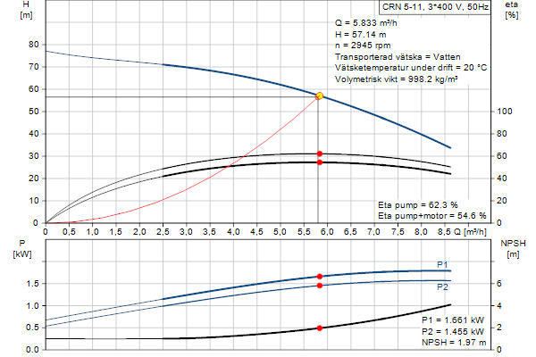 • Pump centrifugalpump vertikal flerstegs Grundfos CRN 5-11,  2,2kW 5,8m³/h  56,5m