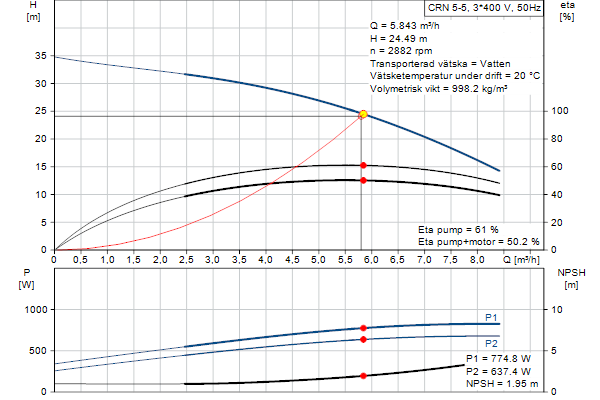 • Pump centrifugalpump vertikal flerstegs Grundfos CRN 5-5,  0,75kW 5,843m³/h  24,49m