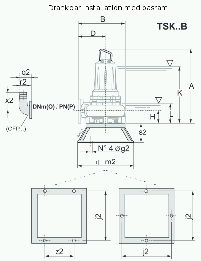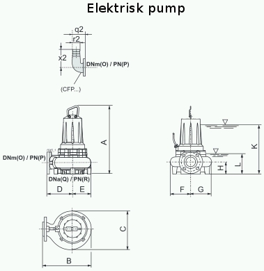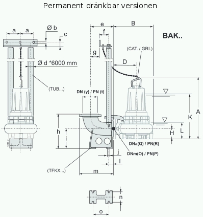 (3) K = Minsta nedsänkning djup för motor utan hölje med kontinuerlig drift S1 (NPSH tillåter)