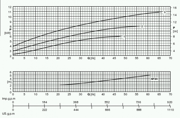 L = Minsta nedsänkning djup för motor utan hölje med intermittent drift S3 (NPSH tillåter)